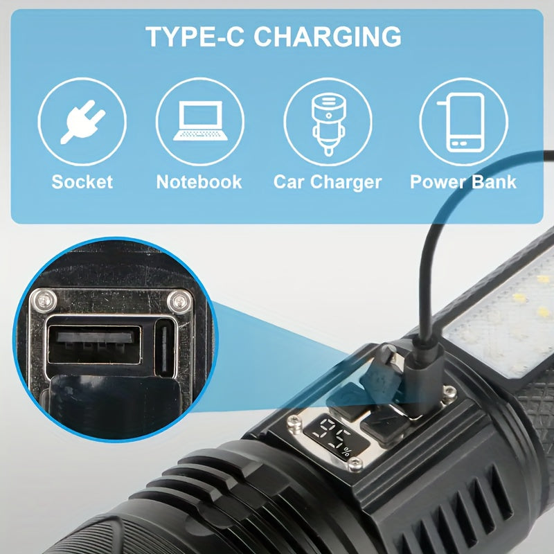 High-Power LED Flashlight, Built-In Battery Tactical Flashlight, Rechargeable Portable Flashlight, IP65 Waterproof, Suitable for Outdoor Work, Hunting, Fishing