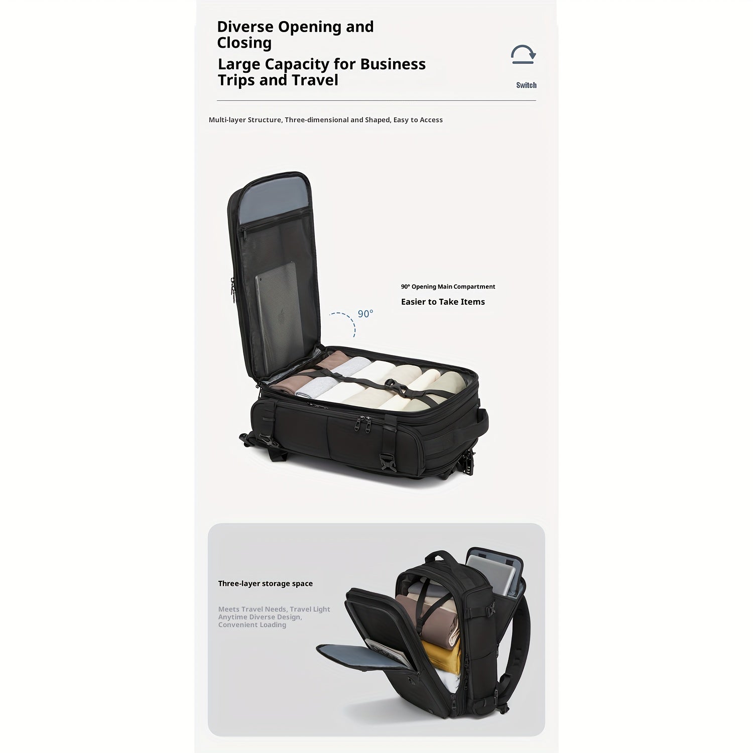 Men'S Stylish Multifunctional Backpack, a Large Capacity Bag for Outdoor Sports And Travel, Featuring a Three-In-One Detachable Design